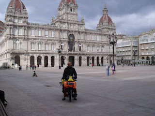 Vou até Pondedeume, um “Pueblo” situado numa foz de rio, lindo, típico pueblo à beira foz plantado. O “taller”(mecânico) trabalha para a loja onde me dirigi, mas hoje não vem, está a reparar um barco. A loja vendia barcos, canoas, material para actividade marítima, bicicletas, muito engraçada. Parto então para Ferrol, e comunico ao mecânico que no dia seguinte regressaria com a roda, mas “Mikeê" entretanto comunica com a loja em Ferrol e diz que vai lá buscar a roda depois (a 30kms de distância). Pessoas com muita experiência de vida e abertas, são mais à frente!!!!!