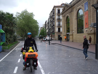 Ao chegar muito próximo de Bilbau(a 10kms, e os prédios já começaram a aparecer a alguns kms) à tardinha, cometi novamente o mesmo erro, mas fui aconselhado por algumas pessoas a ir a uma povoação 2 kms atrás, onde há mais sossego. Começo então a subir monte acima, por um caminho de cabras, e encontro um pastor que me aconselha o terreno do vizinho, fantástico, mais uma noite resolvida. De manhã apressei-me a sair para fora do campo das vacas, elas começaram a descer a encosta.